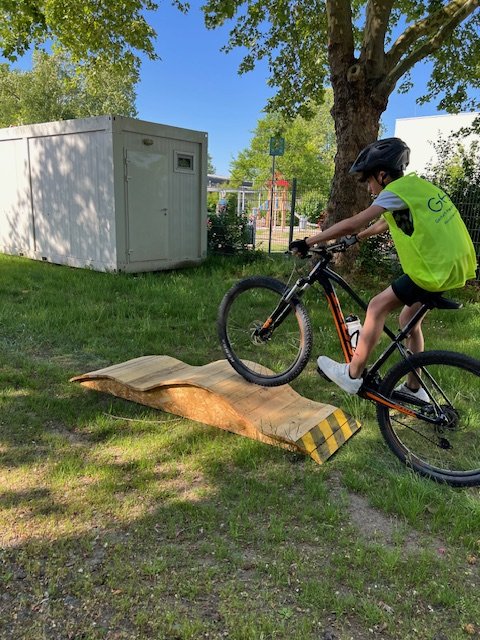 Der besondere Höhepunkt war der Fahrradparcours auf dem Schulgelände, der mit verschiedenen Elementen sowohl Fahrtechnik als auch Koordination forderte.